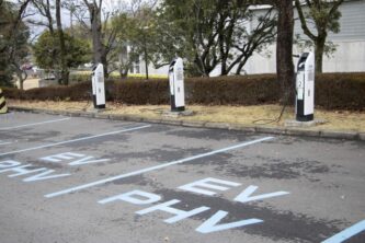 高松市にて、商業施設の駐車場に電気自動車の充電器設置工事を行いました!